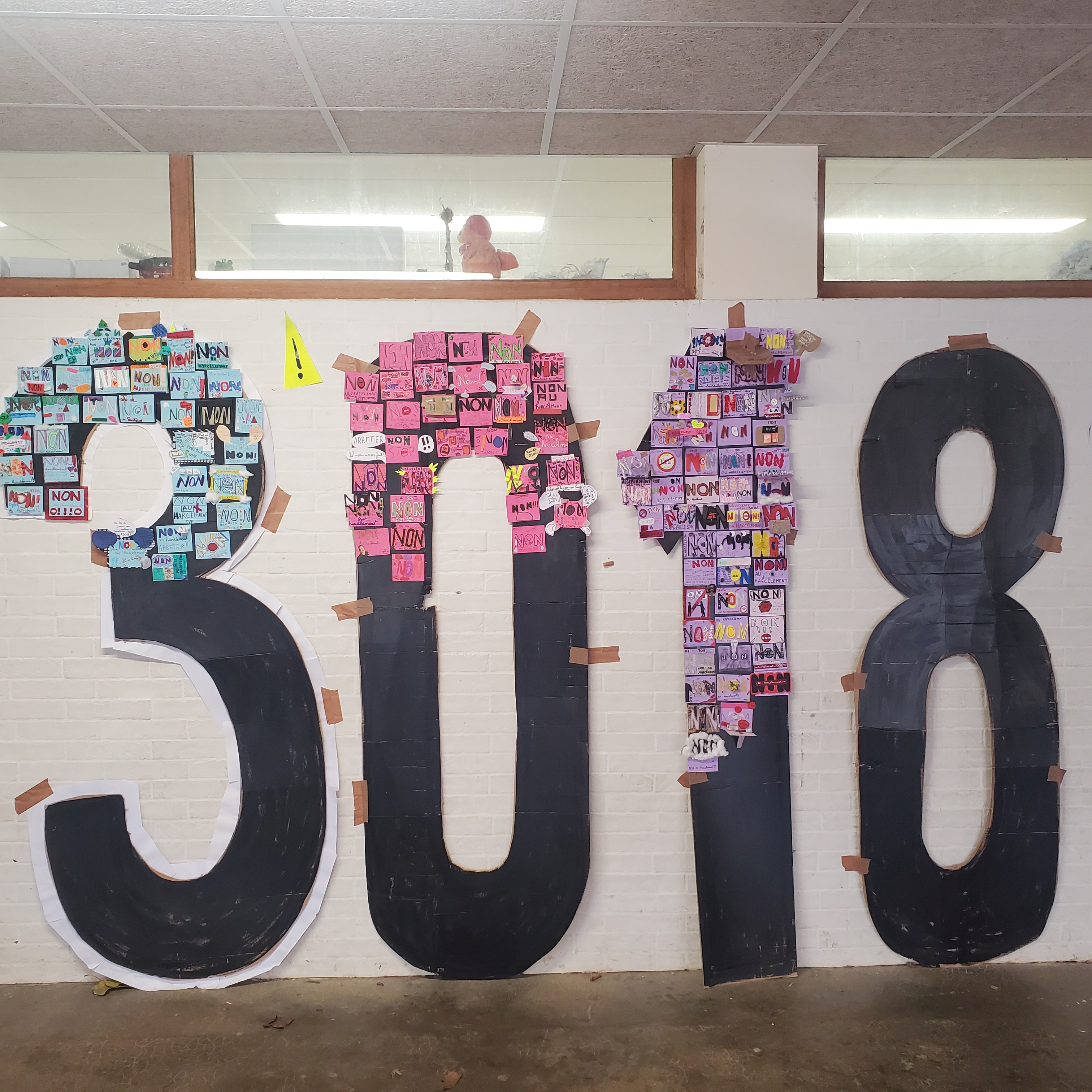 🎨 En arts plastiques, les élèves ont conçu en grand format le numéro 3018, symbole d’écoute et d’aide, décoré de messages bienveillants. Cette œuvre collective, exposée dans le couloir du collège, restera visible toute l’année.
